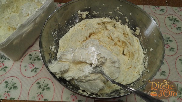 Prepariamo ora il frosting al mascarpone. disponiamo in una ciotola il mascarpone e lo zucchero a velo